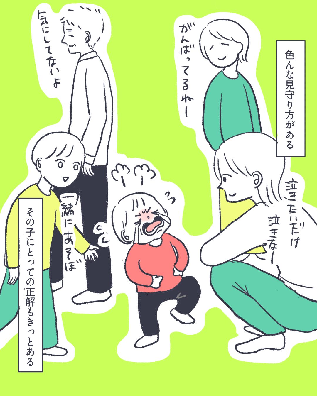 身内は勿論ですが幼稚園の先生や行政の方、道端で出会った、多分今後一生出会わないだろう人に救われた事もあった。