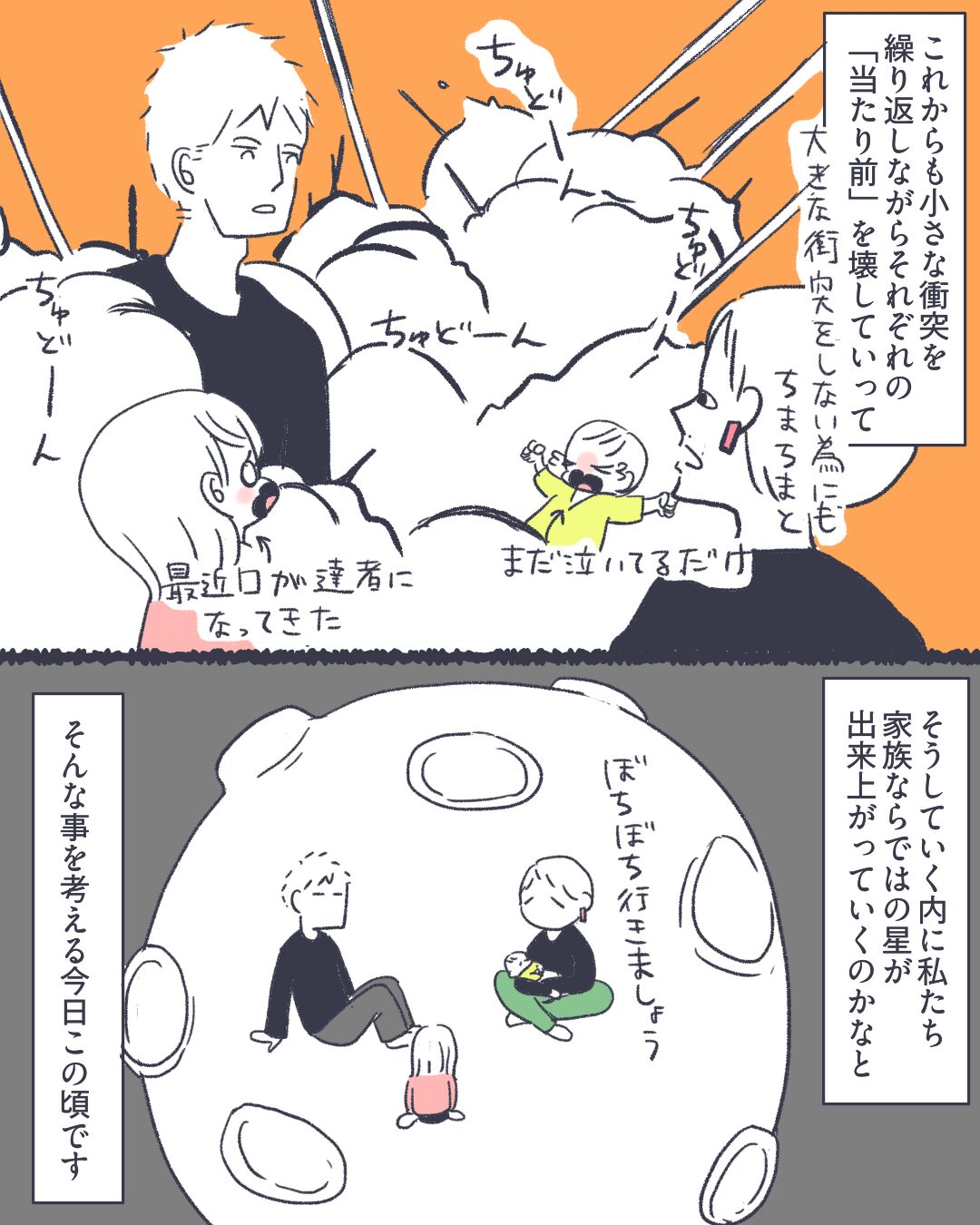 我慢して結局イライラしてる姿より、多少我侭言いながら肩の力抜いてる姿を子供に見せていきたいなあ。その域に達するにはまだまだです。