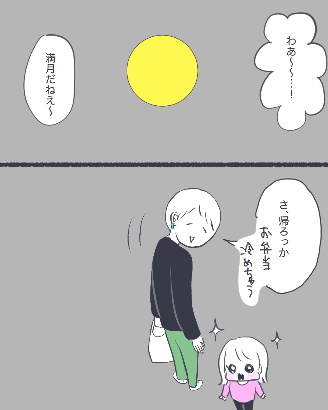 ちなみに帰ってきてからもしくしく泣いていたので「またお月様に会いに行こうね~」ってデレデレしながら言ったら