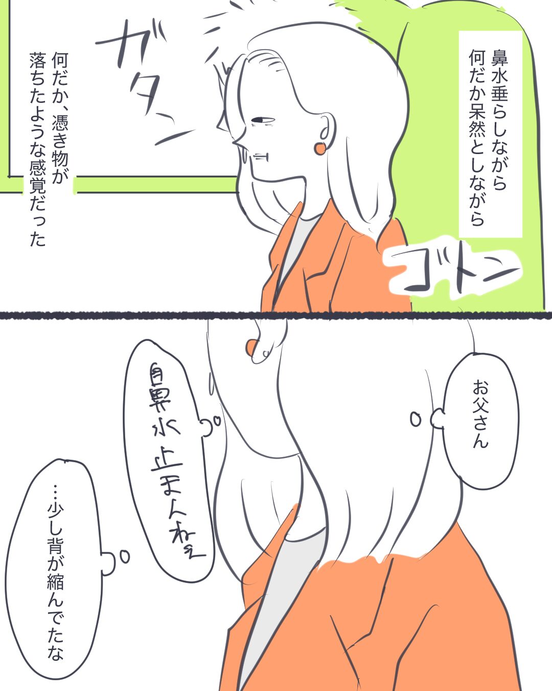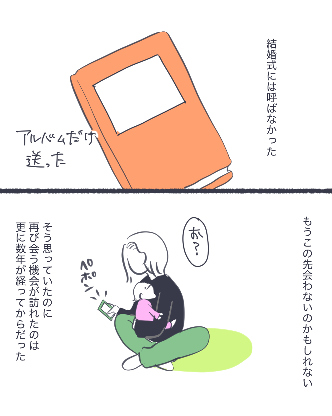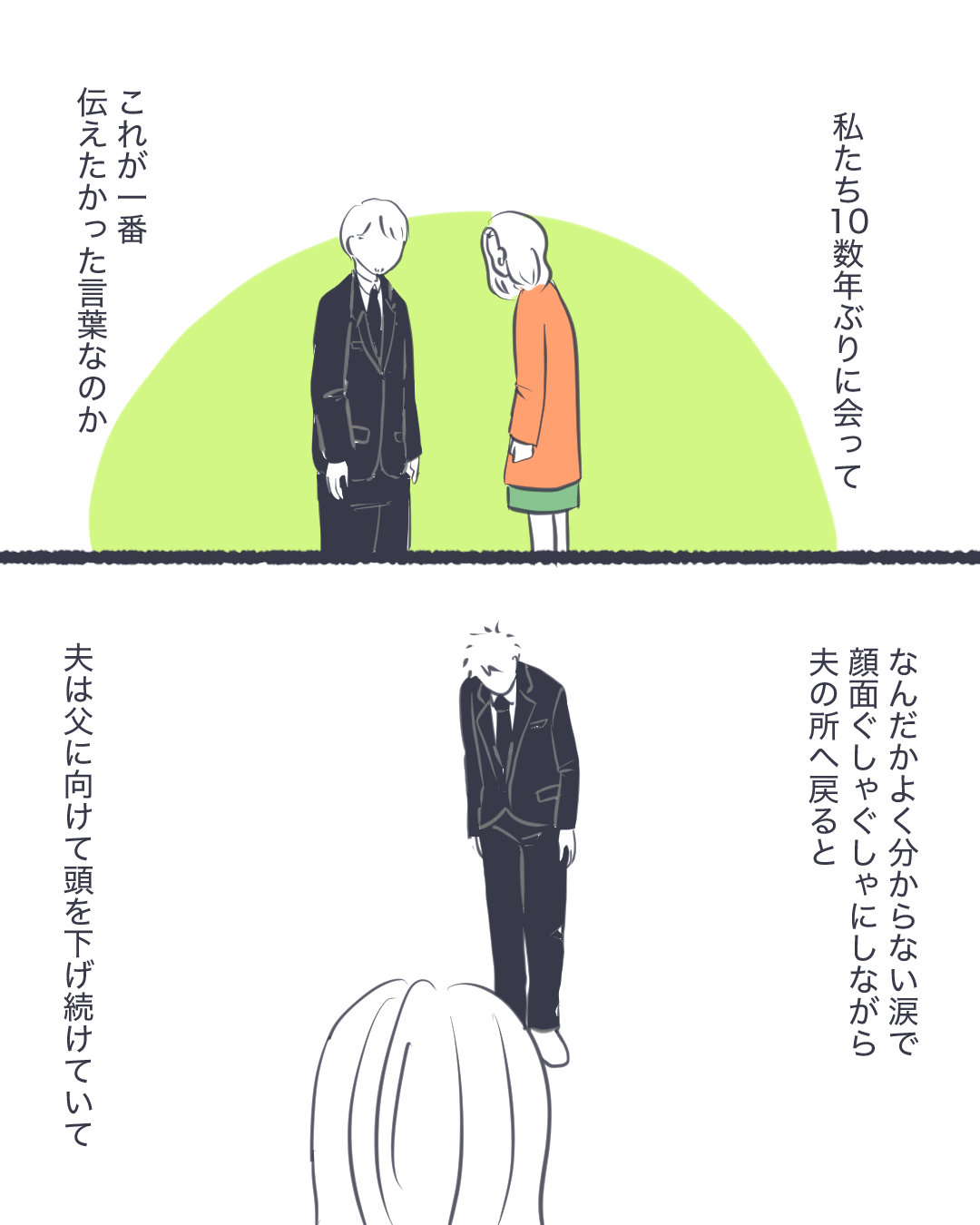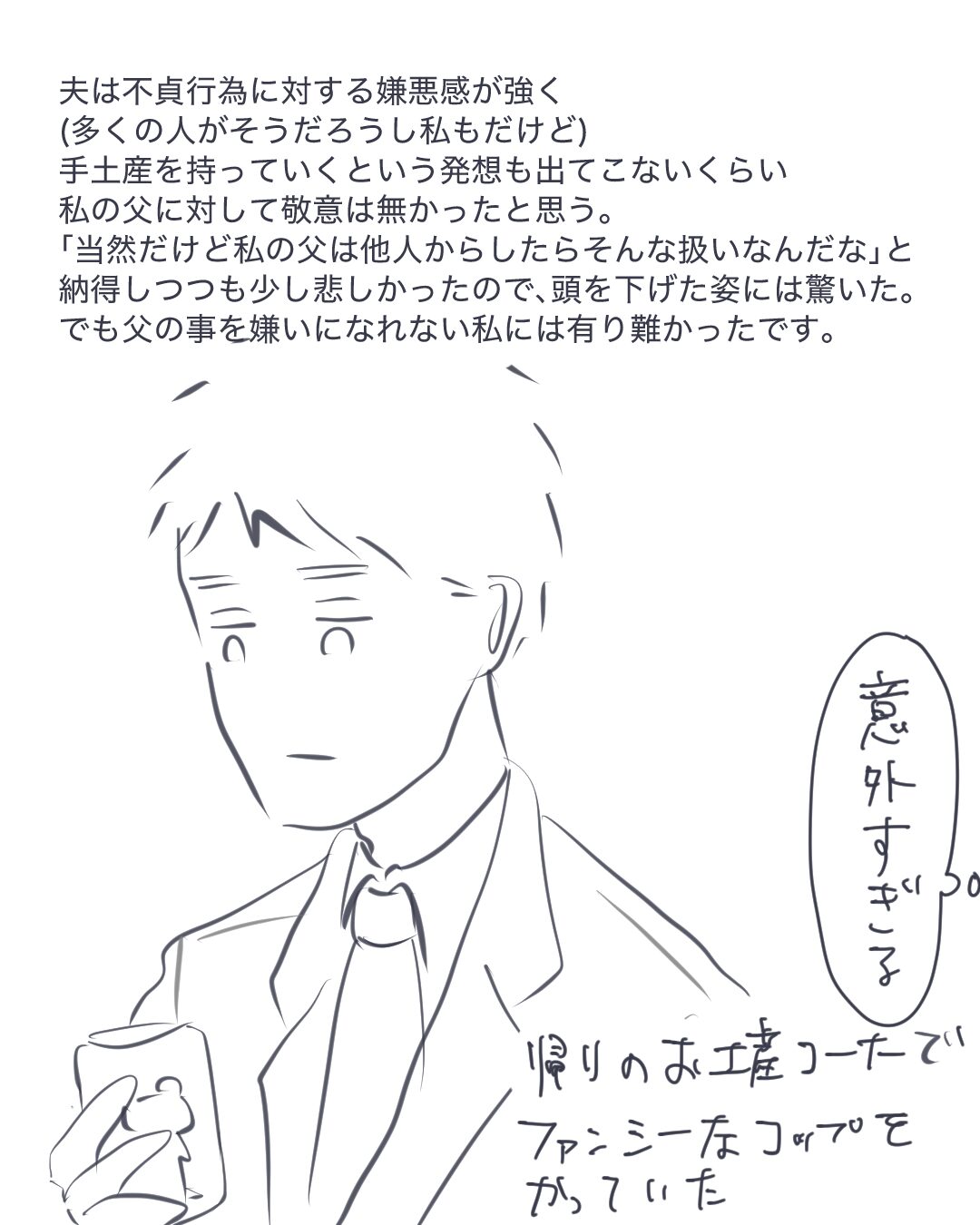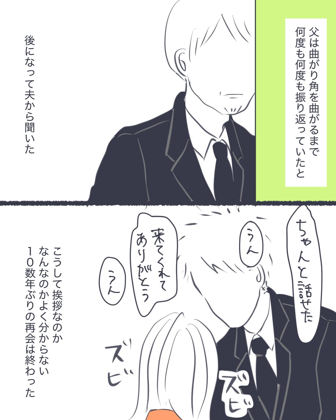 これを描いていて、そういえば父からちゃんとした謝罪を受けた事ってなかったなあと思い出しました。謝罪しない事が父の決意の表れだったのかもしれない。